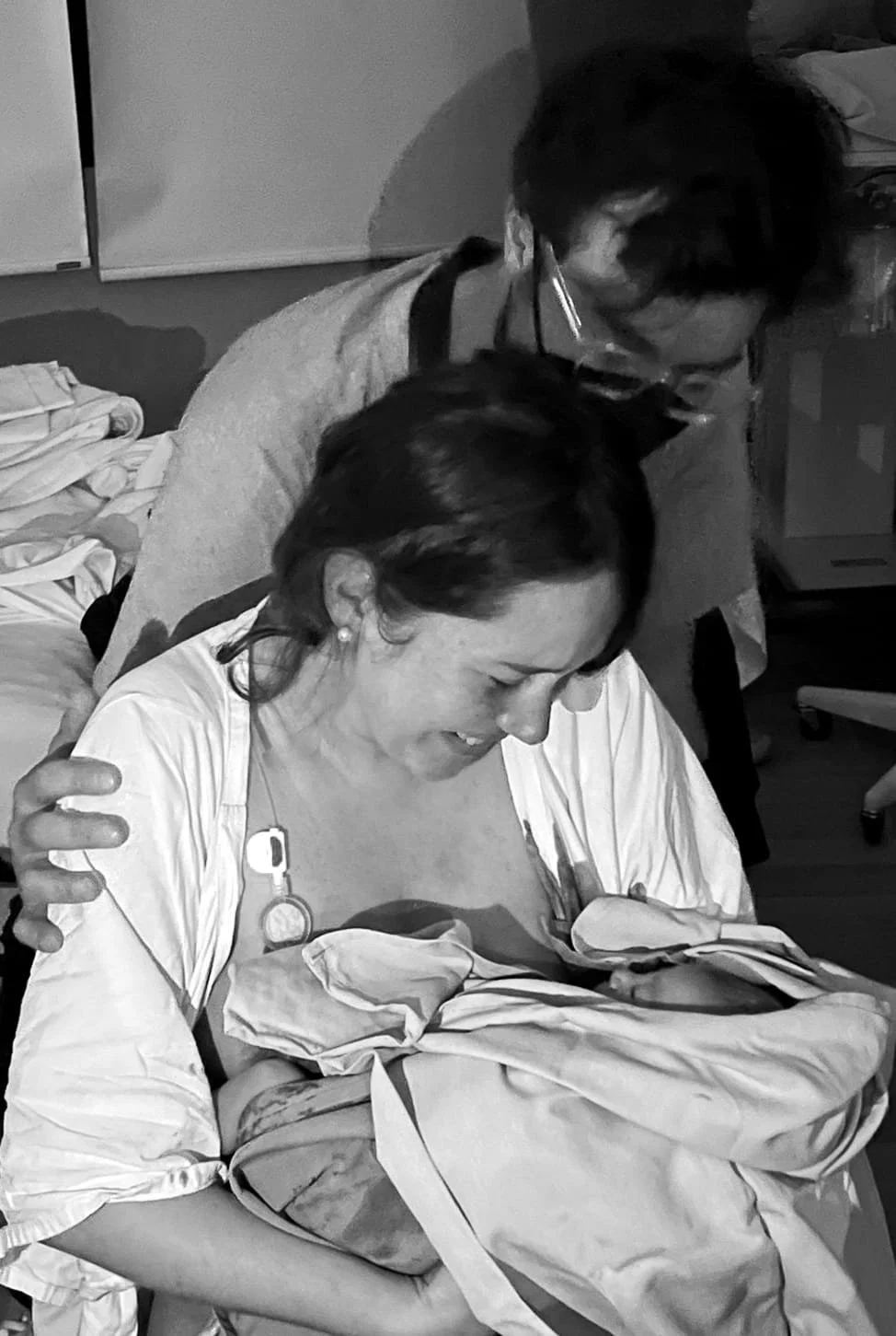Fueron muchas horas las que transcurrieron desde que la inducción inició hasta que recibió a su bebé al otro lado de una piel que tuvo que ser cortada para abrirle camino.