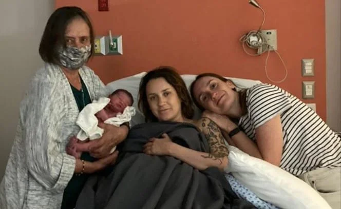 Su pareja frente a ella que la cuidaba y apretaba sus rodillas y los médicos a un lado atentos a todo lo que ocurría.